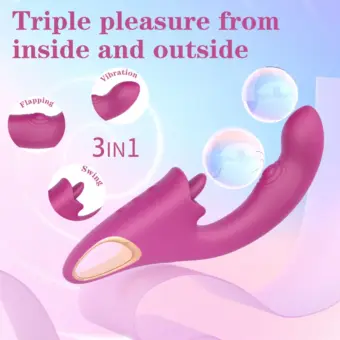Dieser 3-in-1 Vibrator für Frauen wurde speziell entwickelt, um verschiedene erogene Zonen gleichzeitig zu stimulieren. Die Kombination aus Zungenbewegung, G-Punkt-Vibration und realistischem Stoß ermöglicht ein besonders intensives, tiefgehendes und abwechslungsreiches Erlebnis.