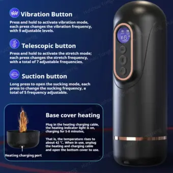 Der Innenkanal ist 3D-strukturiert für ein realistisches Gefühl, kombiniert mit Saug- und Stoßfunktionen sowie einer Heizfunktion, die Wärme simuliert – perfekt für realistische Erfahrungen wie unterwegs oder zu Hause.
